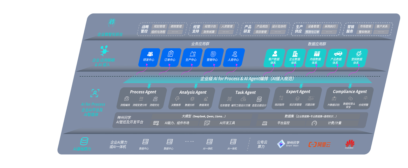 华纳公司问学智车解决方案是一套基于AI技术的汽车行业智能化系统,,覆盖从底层算力到顶层AI应用的全栈方案。。方案由算力层、、模型层和应用层组成:算力层,,,,方案支持多种一体机配置,,,,具备云端灵活部署、、多云适配以及动态优化计算资源的能力;模型层,,,华纳公司问学平台版提供了企业级AI应用一站式构建与管理平台,,,支持基于后训练强化技术的汽车企业专属模型的训练、、、、评测和运营;应用层,,,华纳公司问学DeepSeek版提供包括超级员工、、智能招采、、、、智能营销、、、智能客服、、、、AI for BI等一系列解决方案,,可助力汽车行业实现数字化转型,,,,让管理更智能、、、、响应更敏捷。。。